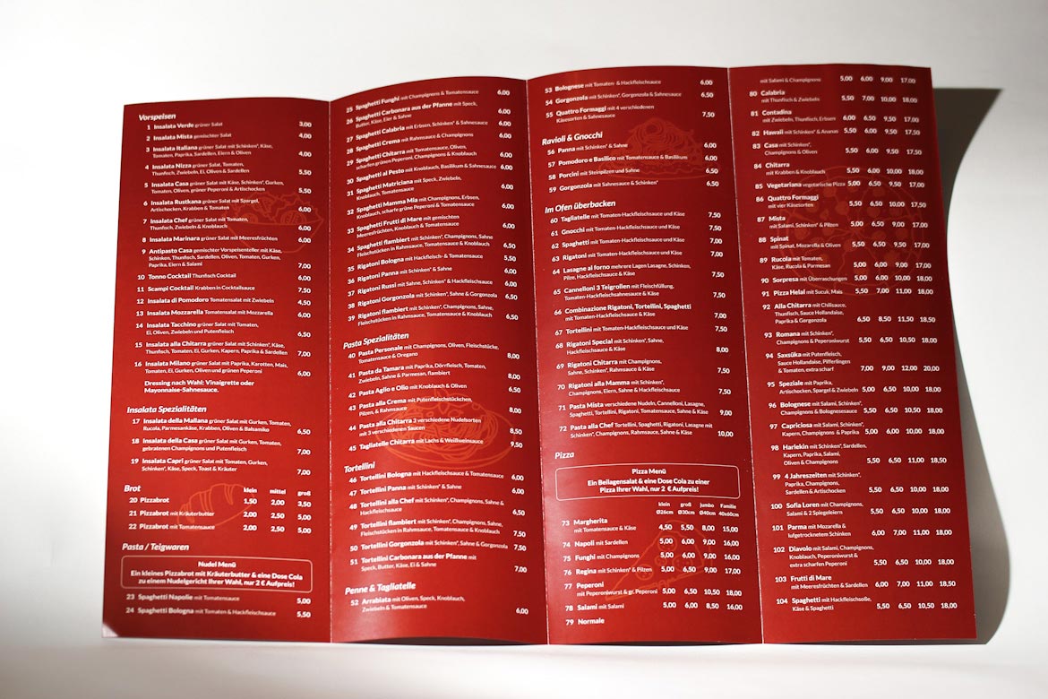 Ein günstiger Lieferservice muss keine schlechten Flyer haben, und ein preiswertes Ristorante muss nicht billig aussehen.