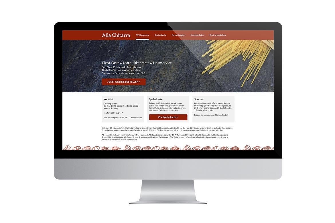 Ausgangspunkt des Projekts war das Vorhaben, den Auftritt des Ristorante & Lieferservices Alla Chitarra neu zu gestalten, da alle Werbemittel optisch sehr schlecht & bunt durcheinander gewürfelt aussahen.